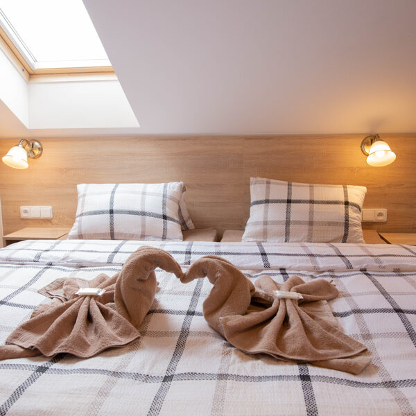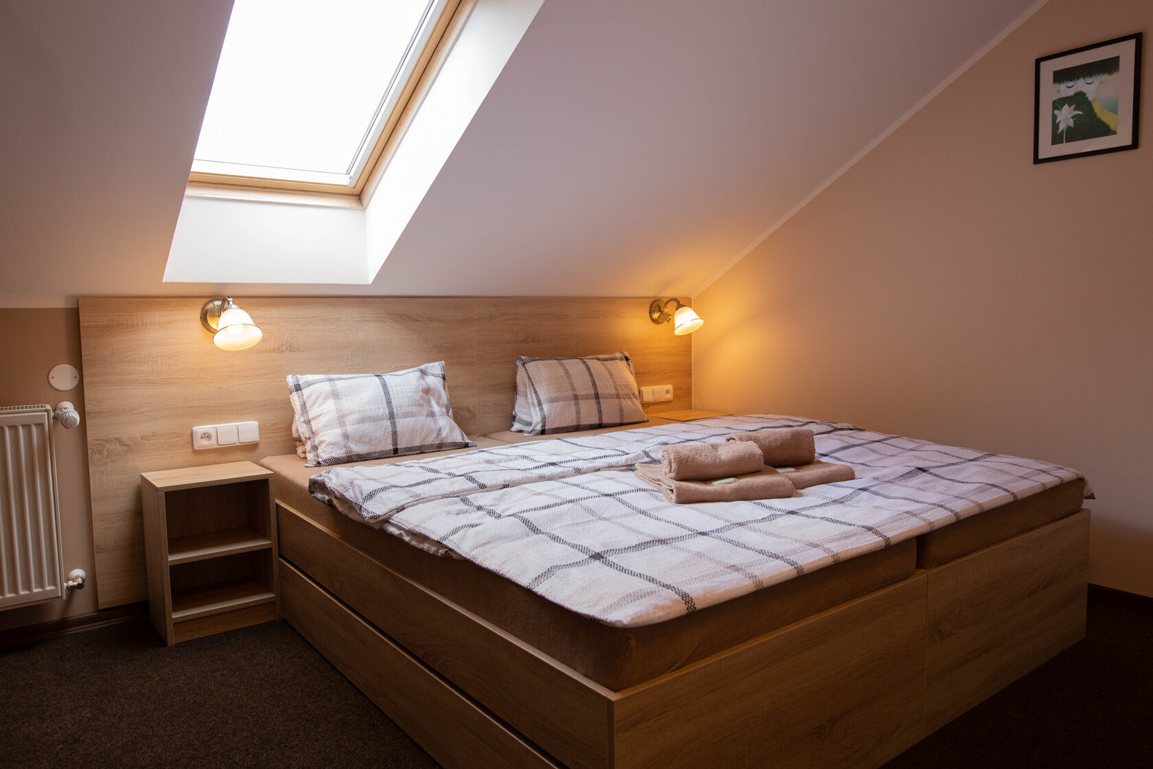 | Třílůžkový pokoj | 2 | 2 propojené místnosti, WC, sprcha, fén, TV | 2 700 Kč/ noc |