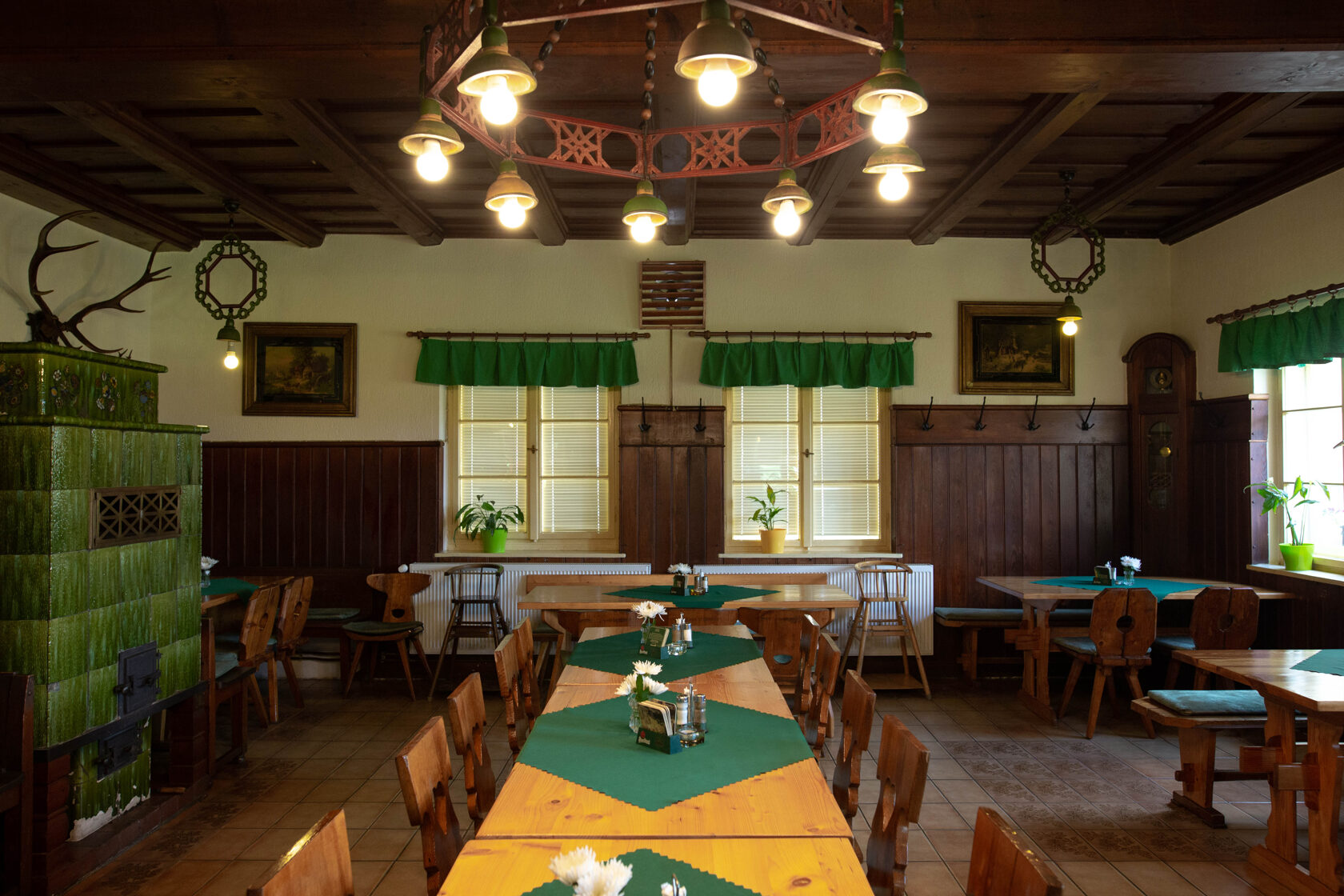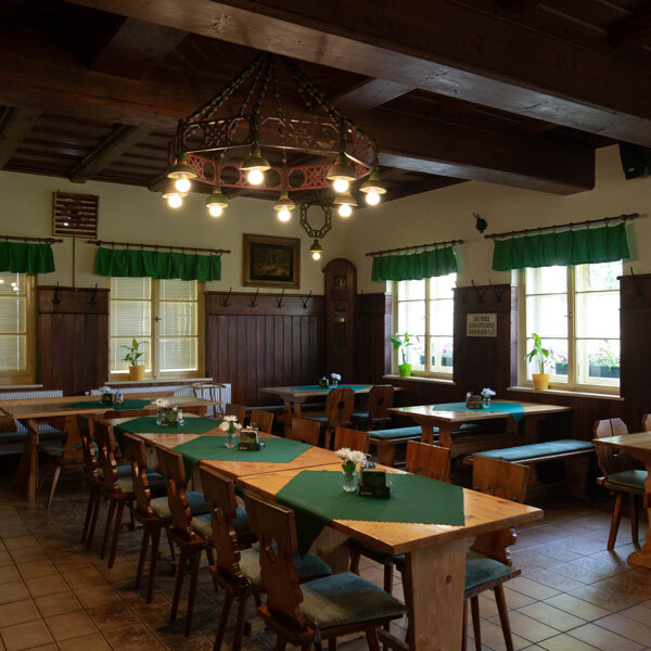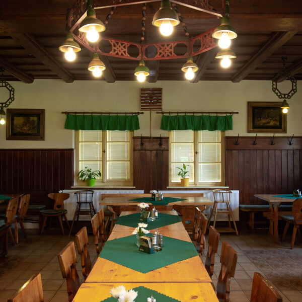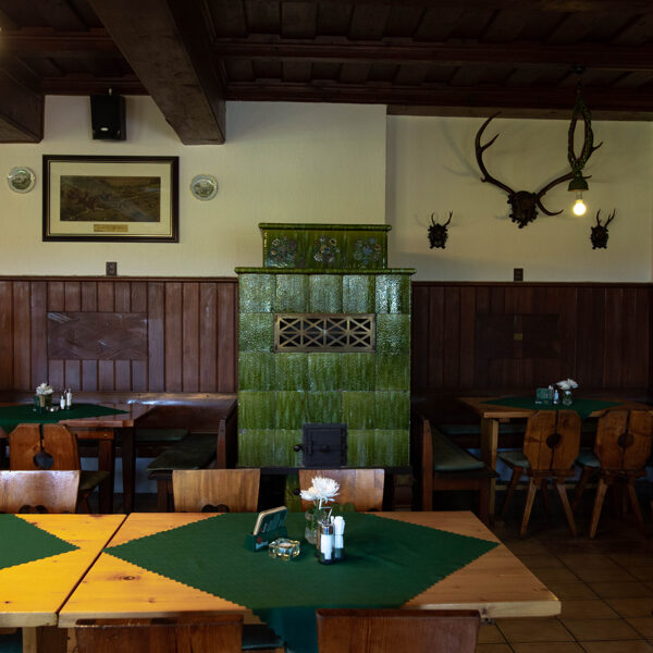 Usedněte v útulném sále historického statku – dřevo, kachlová kamna a klid venkova vytvoří atmosféru, která vybízí k poctivému jídlu a dlouhému posezení.
