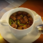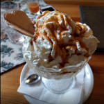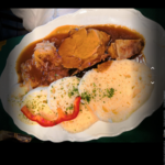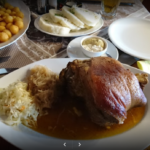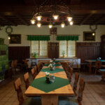 Die Speisekarte bietet klassische tschechische Speisen, Schnellgerichte, hausgemachte Desserts und Eisbecher.